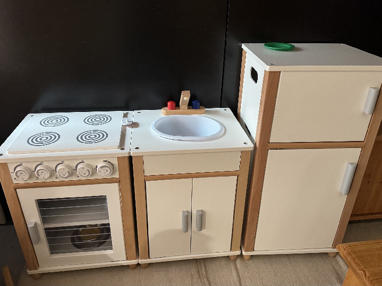 Die kleine Spielküche im Kinderhaus soll dieses Jahr um weitere Module ergänzt werden. Die Küche wird von allen Kindern sehr gerne und viel genutzt, ist aber von der aktuellen Größe mit nur 3 Modulen etwas zu klein für die Menge der Kinder. Es wäre toll, wenn weitere Module hinzugefügt werden könnten, so dass die Kinder gemeinsam dort spielen könnten.