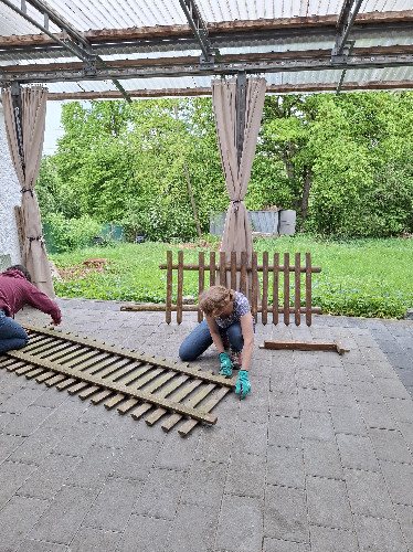 So haben wir Anfang Mai eine gemeinsame „Zaunaktion“ gestartet: Es wurde geschraubt, gestrichen, gesägt, ausgebessert und betoniert – ein echter Kraftakt, bei dem wieder viele helfende Hände im Einsatz waren. Der Zaun steht nun wieder stabil, gepflegt und sicher und wertet unsere Terrasse deutlich auf.