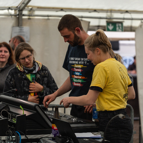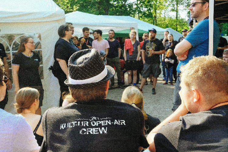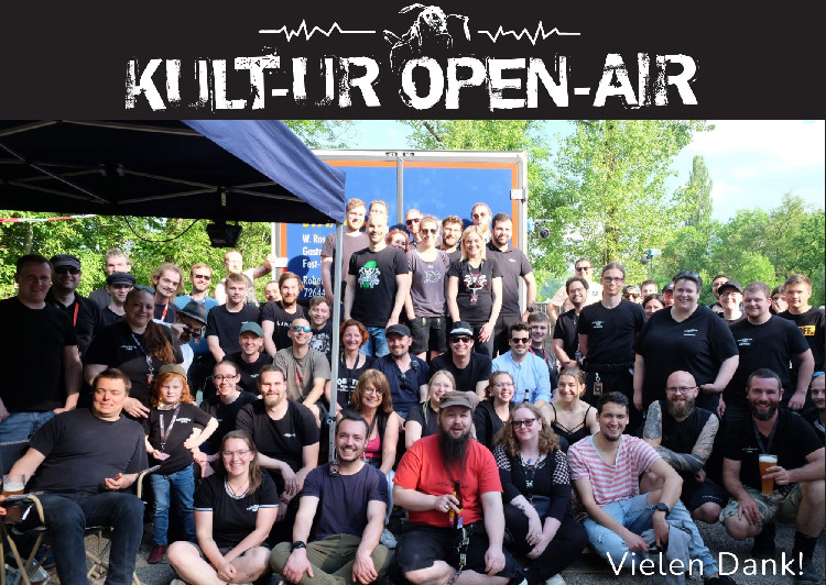 Das Kult-Ur Open-Air wird von einer großen Gruppe ehrenamtlicher Helfern und Helferinnen getragen. Alle bringen sich so viel sie können und wollen ins Team ein. Vom Aufbau, über drei Tage lang ackern in der Küche, am Merch, der Theke, bei der Technik, an der Kasse, im Security-, Media- oder Awareness-Team, der Bandbetreuung bis hin zu Abbau wird alles durch die Ehrenamtlichen gestemmt. Dadurch ist über die Jahre ein bunter Strauß Menschen entstanden, die ein Ziel gemeinsam haben: Einmal im Jahr ein geiles Festival zu machen!