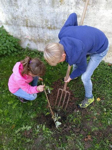 Unser Gemüsebeet und unser kleiner Kartoffelacker sollen die Arbeit der Landwirte und Gärtner zeigen und wertschätzen lernen. Kartoffeln verschiedenster Sorten wurden gesteckt, gepflegt, geerntet und im Herbst Wintergetreide ausgesät.