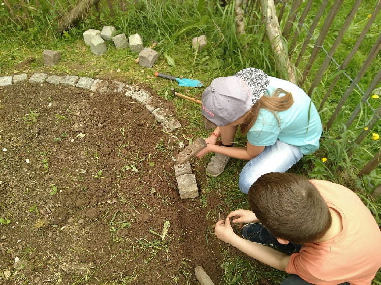 Neben der Imkerei bauen wir Vogelnistkästen und die Bienenkästen zusammen und hängen Hornissenkästen auf, stellen Beeteinfassungen aus Pflastersteinen her, legen Beete an und pflegen diese. Ein Komposthaufen aus selbst gemachten Weidenwänden nimmt die organischen Reste auf. Die Kinder sollen durch das Arbeiten mit den Händen „begreifen“ und dadurch einen gesunden Bezug zur Handarbeit nicht nur in der Natur bekommen.